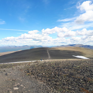 We were there in late June and there was still quite a bit of snow around. Remember waterproof walking shows if you have them. I didn't and I spent the better part of the day walking around in soggy shoes. You can skirt around most of the melting snow, but there are spots you have to walk through it. Also, the hike is a long one, so make sure you bring plenty of snacks and water.